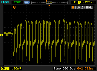 please bear in mind i only used the standard Rigol probe at 10X on my DIY etched pcb for the pictures below, which will give higher load on the signal... plus the DSO internal BW attenuation and non optimized DIY pcb tracks geometry will shrink the signal even further, as for the track geometry, i'm not sure what improvement should i achieve if i send the pcb to fab house. with proper transmission line, i highly believe i can get higher signal representation, but until then. Enjoy!